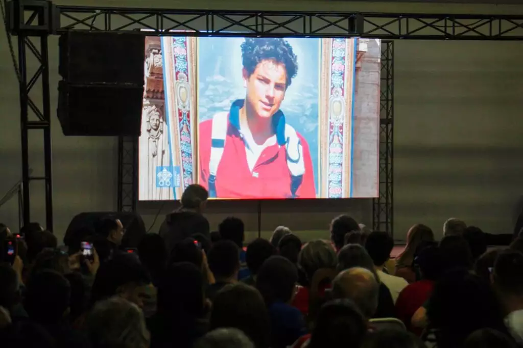Madrugada é de fé e salão lotado para assistir à canonização de Carlo Acutis