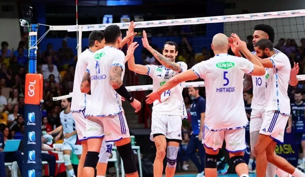 Equipe Sada Cruzeiro, campeã da Superliga Masculina, em Campo Grande (Foto: Anderson Menezes).
